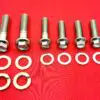 We make these bolt kits from our stock of ARP bolts to our specs. All bolts and washers in the kit are polished. Our washers are custom made to our specs. As you can see in the picture, we don't just send all AN flat washers like you will get elsewhere.