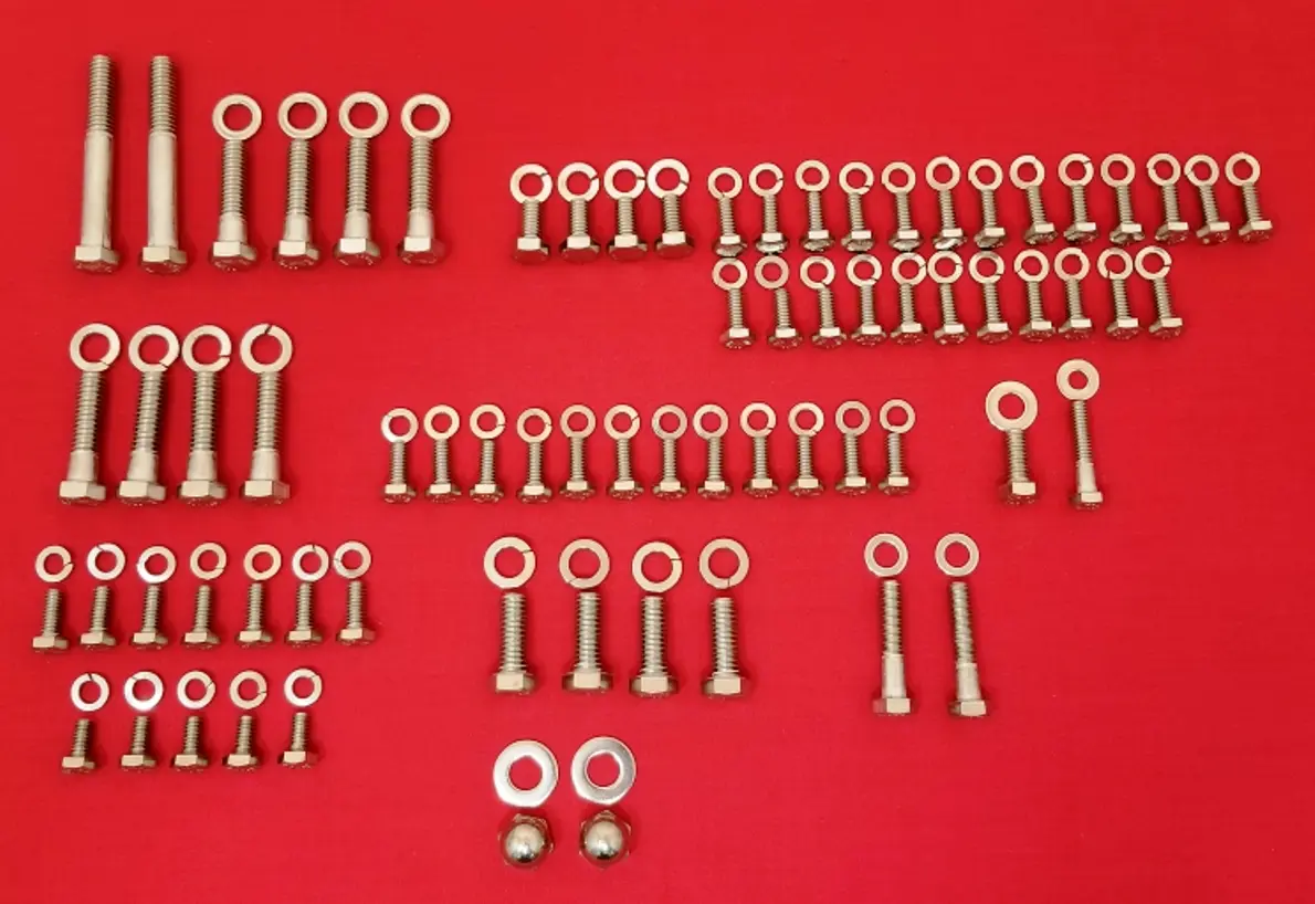 This is a complete stainless steel Allen bolt kit from the intake to the oil pan and is guaranteed to fit your 216 Chevy engine! The kit includes packaged and labeled bolts and washers for the following: