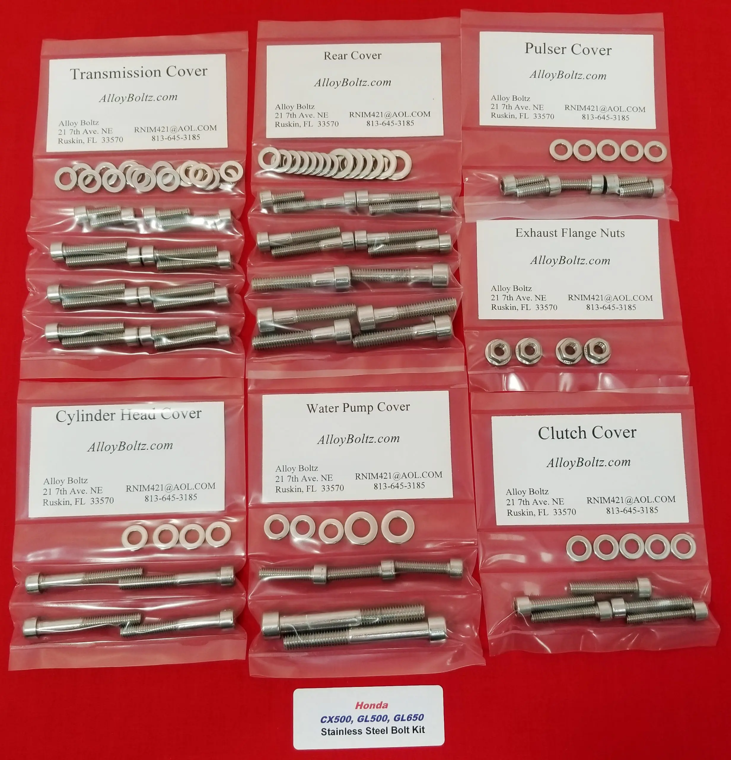 Here is a great way to dress up your 1978-1983 Honda CX500, GL500 or GL650 and get rid of those rusted, oxidized bolts with this beautiful polished 100% stainless steel 102 Piece Allen bolt kit for the Honda engine.